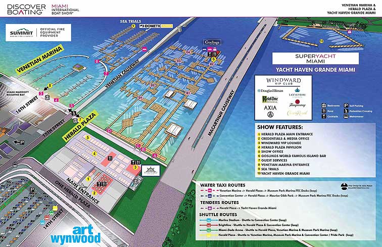 Durante cinco días, los visitantes podrán admirar las últimas novedades del sector y las tendencias del mercado, recorriendo unas inmensas instalaciones distribuidas en cuatro diferentes ubicaciones en el agua, a las que pueden acceder partiendo del recientemente renovado Centro de Convenciones de Miami Beach y Pride Park.