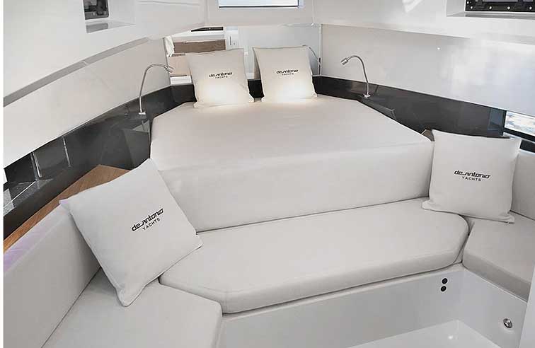 Por su parte en cabina ofrece, además, unos interiores pensados para ser versátiles y amplios, en los que incluye aseo independiente, dinette transformable en proa y un camarote abierto en popa con dos camas que se pueden unir.
