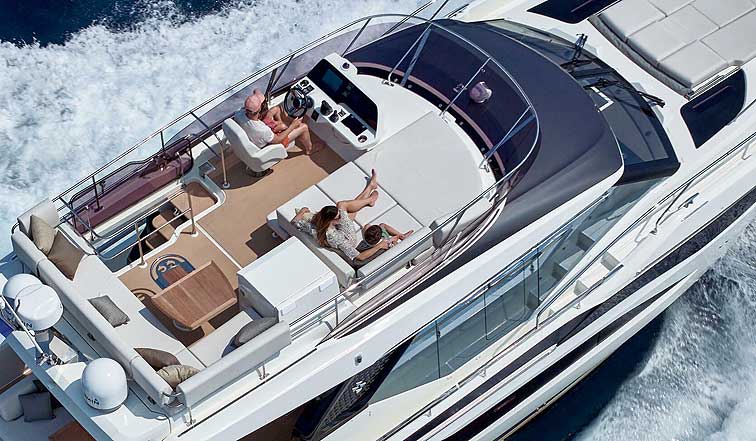 Junto al puesto de pilotaje, tumbonas y asientos propicios para la relajación crean un espacio para mayor comodidad. Los diseños optimizados ofrecen una facilidad de movimiento y comodidad sin precedentes para todos a bordo.