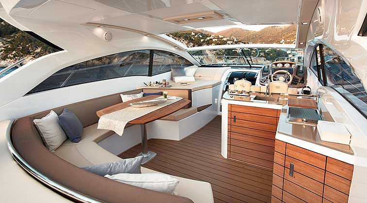 Con una silueta muy reconocible, este modelo destaca por su aspecto aerodinámico y elegante, marcado por la necesidad de disfrutar del sol desde su cubierta de proa hasta el amplio solárium de popa, pasando por la sección practicable del hardtop que ilumina directamente gran parte de la bañera.