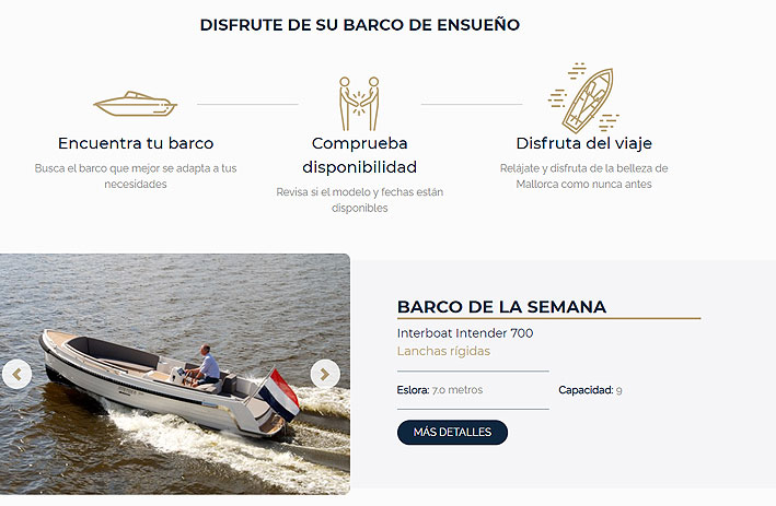 Las diversas utilidades, que cubren sus servicios de venta y alquiler de embarcaciones son totalmente accesibles de forma muy fácil e intuitiva para el visitante, que podrá gestionar sus reservas para compra o alquiler además de contar, como siempre, con la mejor asistencia personal vía telefónica con uno de sus expertos.
