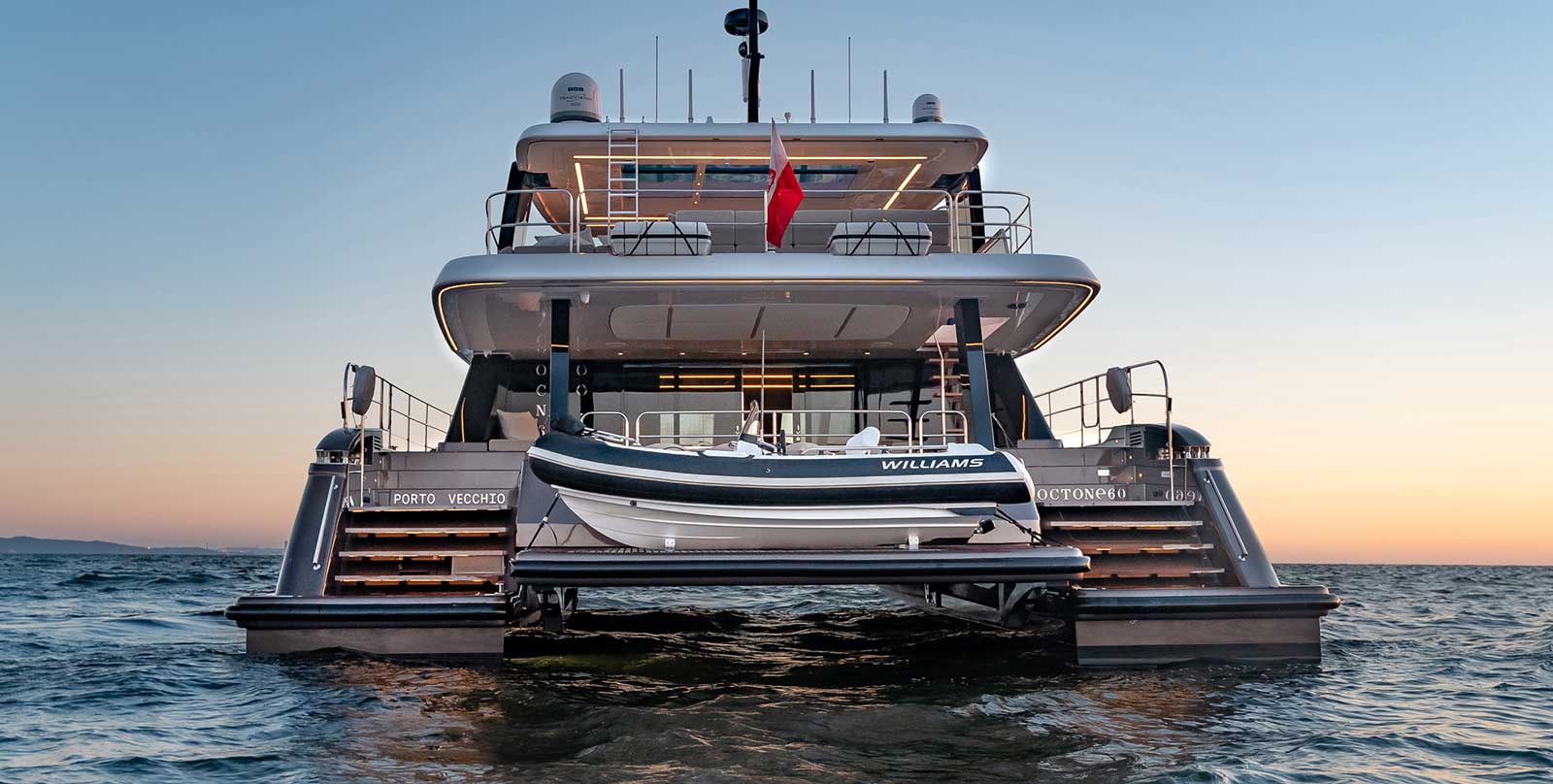 Con su impresionante manga, el 60 Sunreef Power cuenta con selectos espacios de gran confort a bordo, desde el impresionante flybridge, que puede albergar una piscina de hidromasaje, un bar, un comedor y sombrillas de gran tamaño y está cuidadosamente protegido por un gran hardtop o la práctica plataforma de baño hidráulica acompañada de un innovador garaje y que forma playa propia en la popa, hasta la confortable bañera o la dinette que compaña el gran solárium de la cubierta de proa.