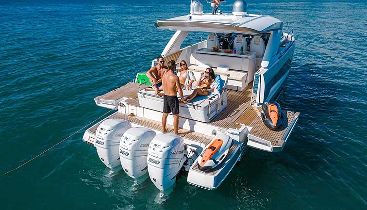 De la línea de pesca-paseo Merry Fisher, contaba con la nueva MF 1295 Fly, que incorpora un gran flybridge para su eslora y todos los elementos para disfrutar de un cómodo crucero.