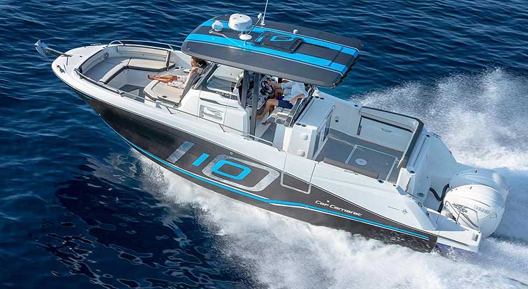 La polivalente Cap Camarat incorporaba su mayor diseño con un 10.5 en su versión de potente motorización fueraborda, más hacia un estilo americano.