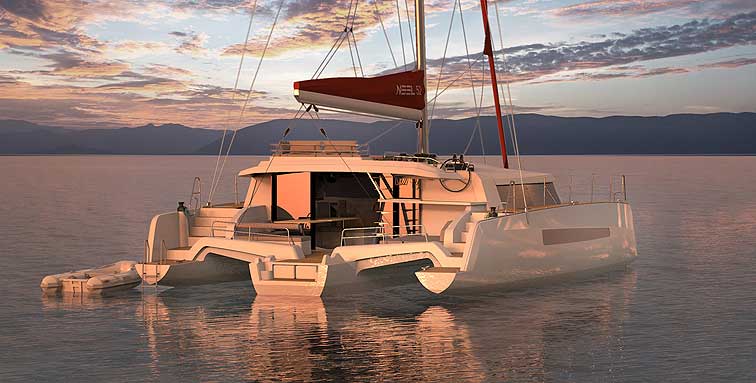 Distribuida en Andorra y España por Med Cat Yachts, la gama de trimaranes franceses NEEL sigue defendiendo su personal concepción de cómo debe ser un moderno crucero de altura, en el que se unen las ventajas de capacidad y estabilidad de un catamarán y las prestaciones de un monocasco de alto rendimiento.