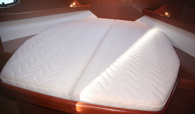 En proa cuenta con un camarote de buen volumen con una puerta de acceso corredera, que seguramente se debería copiar para el baño, en el que se incluye una cama doble, armario y un interesante secreter en la banda.