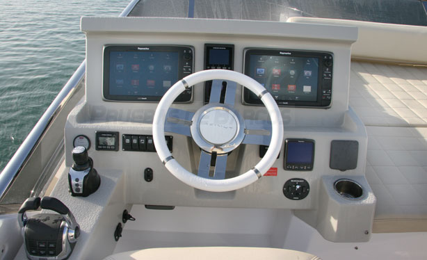 Por otra parte, si bien el ralentí resultaba bastante alto, la unidad que probamos incluía un interesante sistema de maniobra para puerto mediante un joystick que reducía esa velocidad, además de facilitar la maniobra al combinar la acción de las hélices de los motores con la hélice de proa.