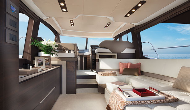Nominado como barco a motor del año 2015, la última incorporación a la colección Flybridge del astillero italiano Azimut resulta una propuesta muy bien adaptada a las últimas tendencias del mercado, optando por una gran conexión entre el exterior y la cabina, especialmente en aspectos como la luz y la visibilidad.