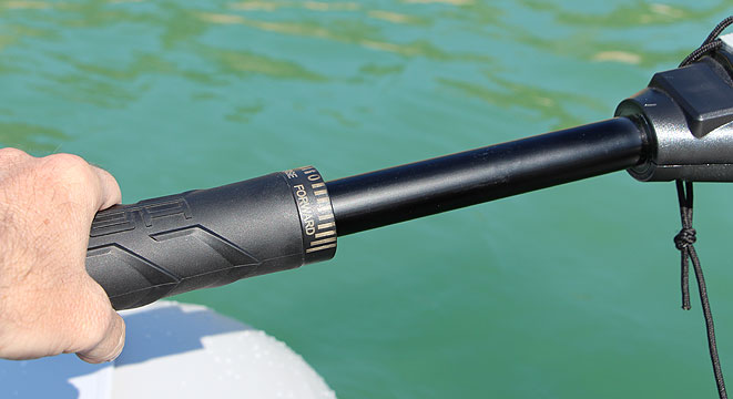 Entre los detalles que nos parecieron más prácticos de este modelo son sin duda el hecho de que la batería es desmontable para su carga en tierra y el diseño de su caña, que además de ser de altura regulable, es de empuñadura extensible para poder variar nuestra posición según las necesidades.
