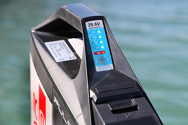 Por su reciente diseño, el nuevo fueraborda Pulsar 3.0 se presenta con un aspecto muy atrevido y modular, en el que destaca su potente batería incorporada de 29,6 voltios que puede desmontarse de su soporte y transportarla sin esfuerzo mediante un asa superior integrada, para su carga en una toma de tierra. Esta batería incluye, además, una serie de luces Led que indican en todo momento el nivel de carga.