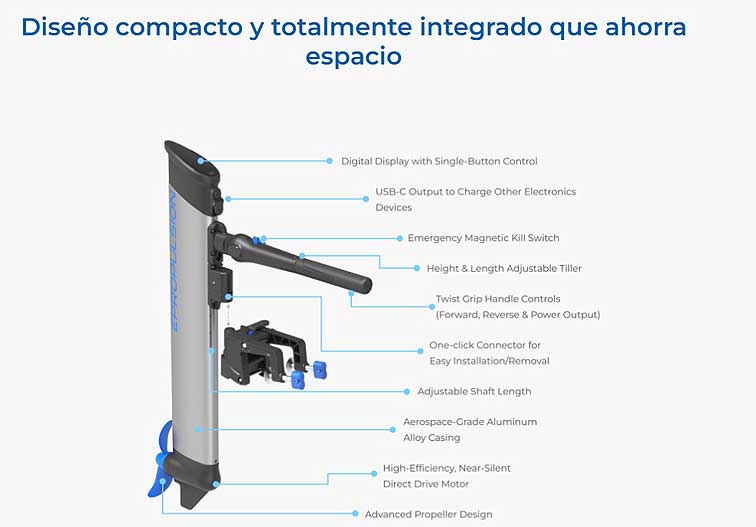 La gama motores eléctricos ePropulsion, importada en España por Solé Iberia, ha presentado en el reciente Salón Náutico de Düseldorf un nuevo fueraborda ligero eLite de 500w, de atrevido diseño y gran manejabilidad.