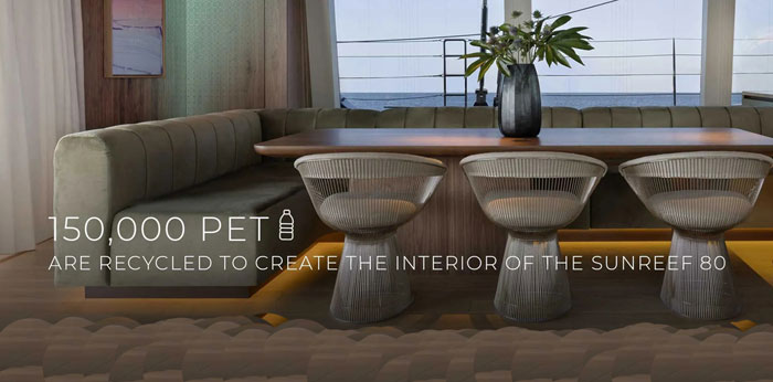 Como astillero de referencia mundial en super catamaranes de lujo, Sunreef Yachts sigue manteniendo una actitud activa respecto a la navegación Eco Sostenible, con propuestas reales y eficientes como el uso de materiales reciclables para su construcción.