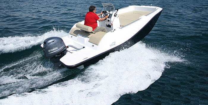 Con un aspecto muy moderno y llamativo, se presenta la pequeña V2 5.0 como una lancha de navegación costera práctica y dotada de interesantes soluciones para tomar el sol.